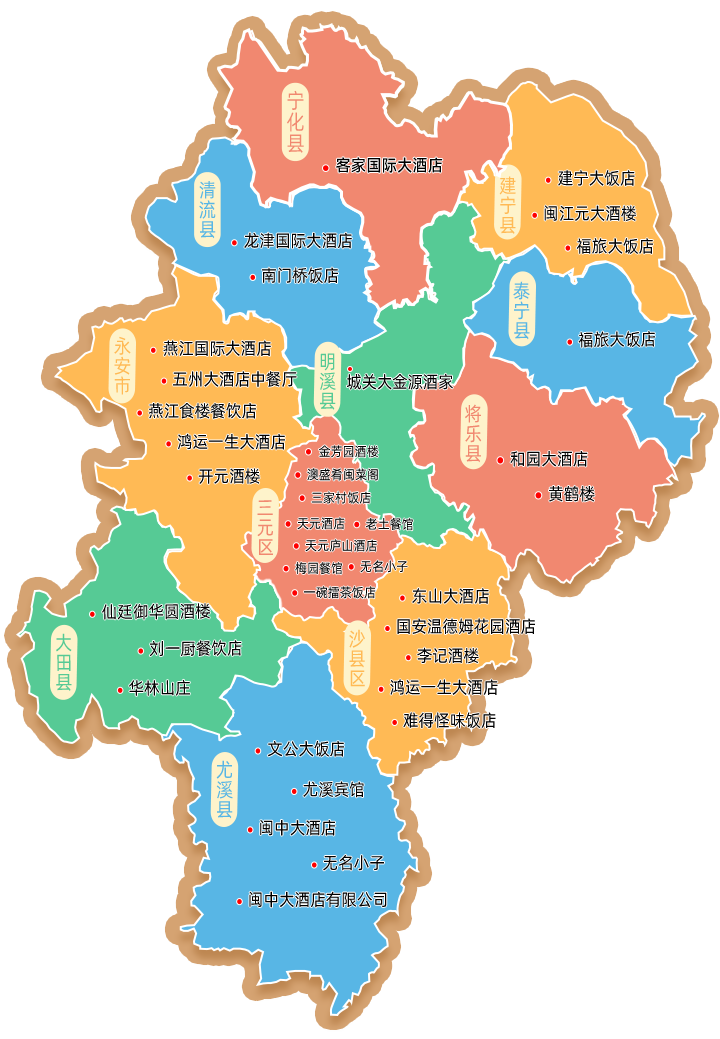 尤溪 大田 沙县 永安 三元 将乐 清流 明溪 泰宁 宁化 建宁
